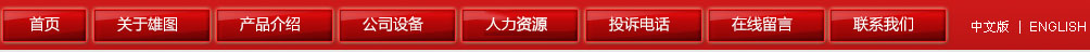 網(wǎng)站首頁(yè) | 關(guān)于雄圖 | 產(chǎn)品介紹 | 公司設(shè)備 | 新聞中心 | 投訴電話 | 在線留言 | 聯(lián)系我們 | ENGLISH 【后臺(tái)管理】